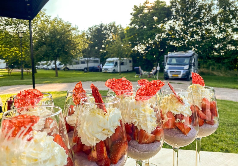 De ontbijtbox wordt tussen 9:00 en 10:00 uur bij de camper bezorgd.