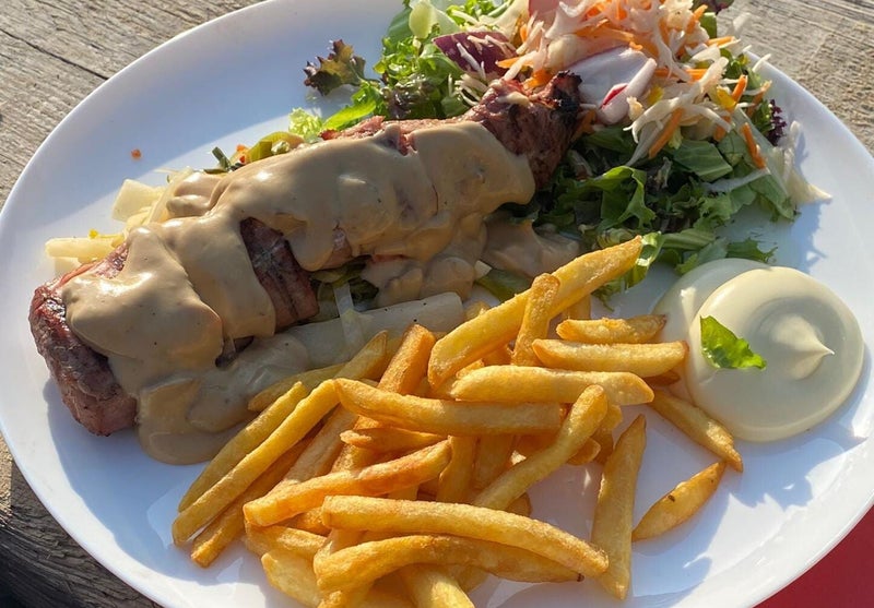 Zalm of varkenshaas van de BBQ incl. frites en salade
